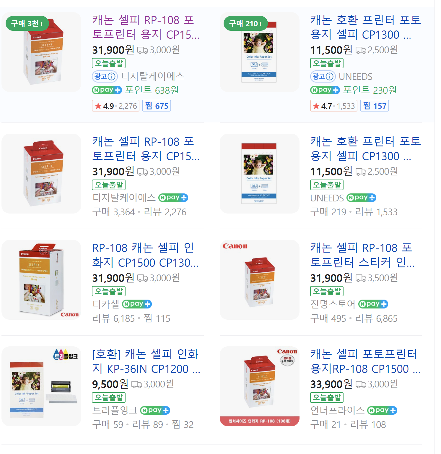 인화지 크기까지 생각한다면 CP1500이 많이 저렴한 편 같네요.