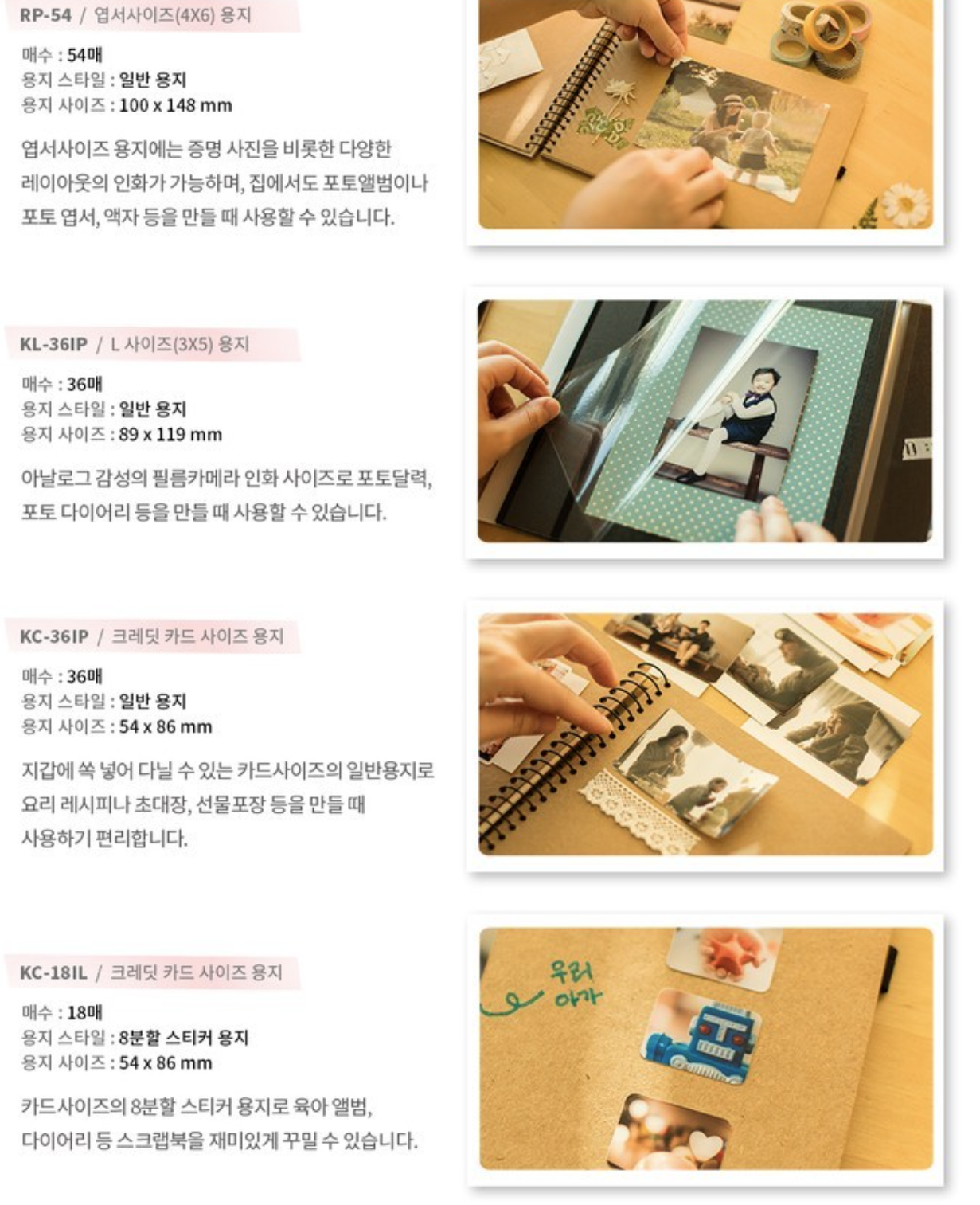 CP1500의 사진 사이즈는 엽서,정사각,카드 사이즈등 다양합니다.